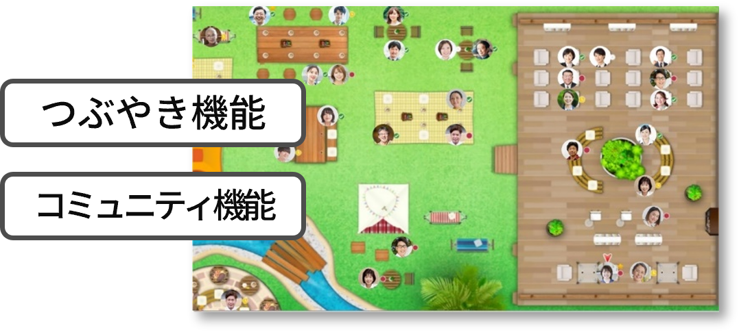 - バーチャルフロア上で従業員同士のコミュニケーションを活性化
