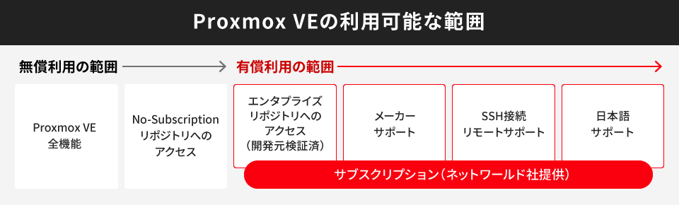 | Proxmox VEの全機能の利用 | 〇 | 〇 | 〇 | 〇 |